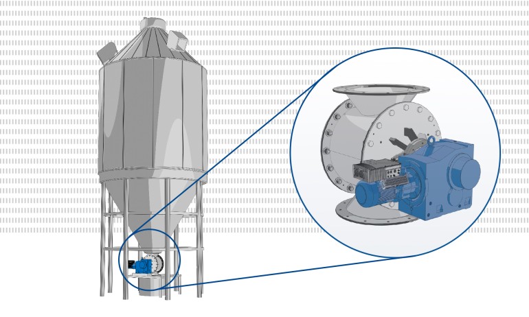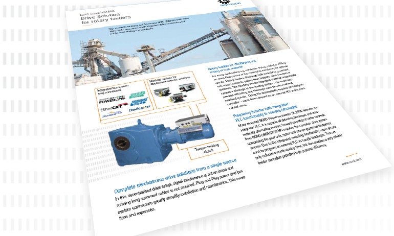 NORD DRIVESYSTEMS biedt aandrijfsystemen voor roterende sluizen met geïntegreerde intelligente besturingen, die de meeste blokkeringen automatisch opheffen. Door de geïntegreerde omkeerfuncties hoeven gebruikers geen externe PLCs te programmeren om blokkeringen op te heffen. De op de motor gemonteerde NORD-frequentieomvormer SK 200E bezit een ingebouwde PLC, die blokkades herkent, automatisch de draairichting omkeert en hiermee de blokkering oplost.