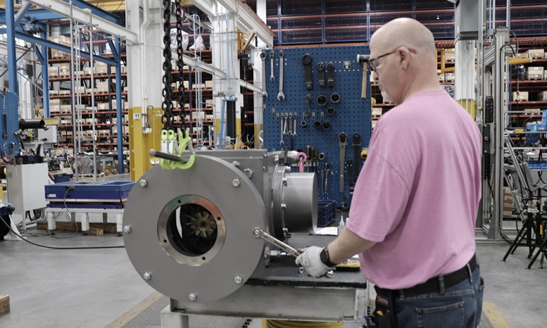 A gear unit consists of an electric motor powering a gearbox. The motor spins at a specified revolutions per minute (rpm) and is connected to a small gear inside of the gearbox, which rotates a larger gear to reduce the output speed of rotation and increase torque. The gearbox's spinning output shaft is connected to a system, such as a conveyor belt in a distribution center or food processing line. Gear units like those produced at NORD are the reason garage doors go up, mixers spin, and rollers form steel.